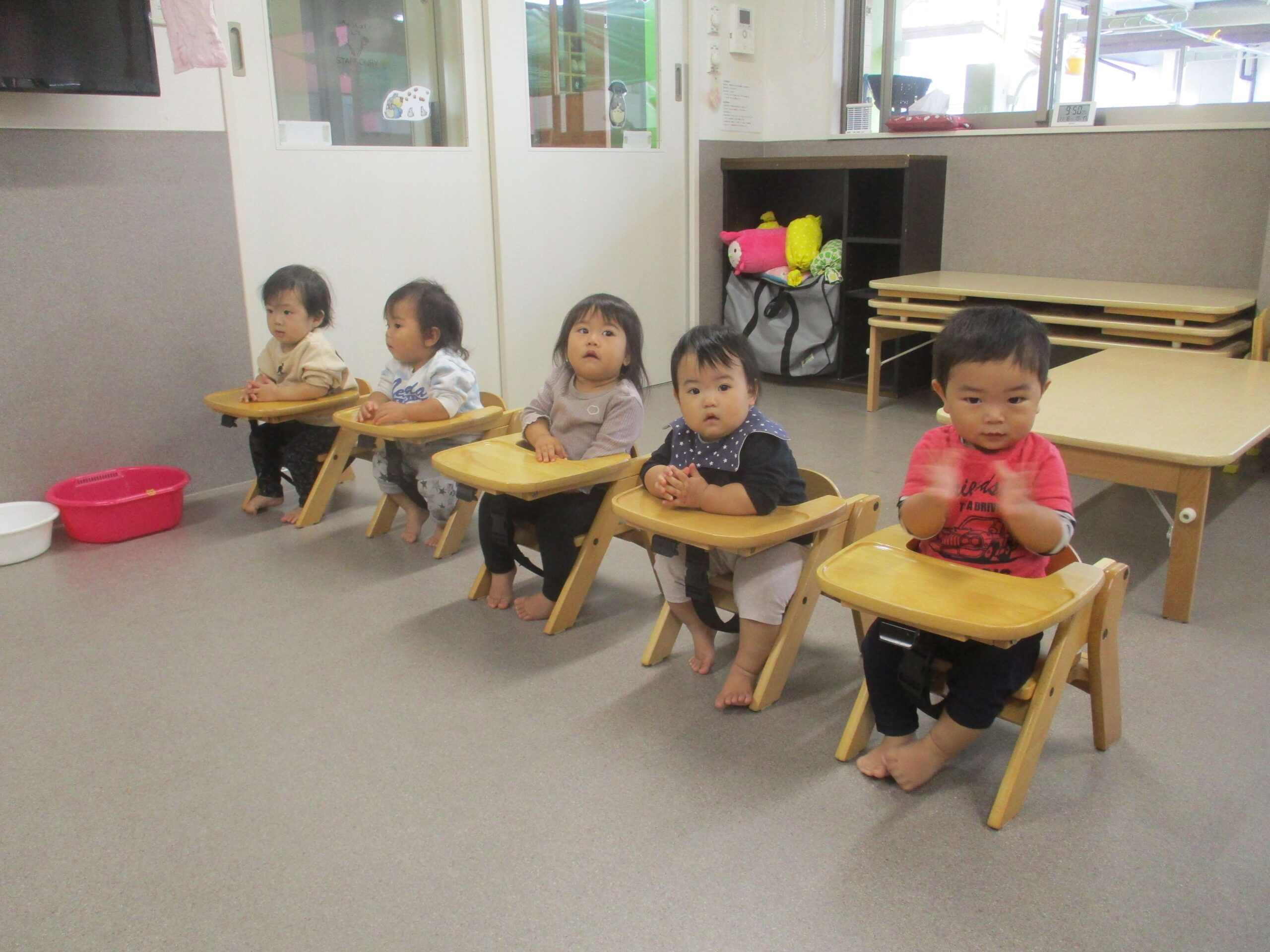 Home お知らせ もも組だより【11月】 もも組だより【11月】 2025.11.30 お知らせ 11月から新入園児1名を迎えて、もも組さんは計5名になりました🎵11月は、過ごしやすい日も増えてきたので、戸外にでる機会も多くなりました☺️!お外に出る身支度の際には、自分の靴下をカゴから選んで取ったり、帽子を被ろうとしたりと子ども達も意欲的に準備をしていました😆!園庭では登れなかった滑り台の階段も自分で登ったり、靴を履いて色々なところを探索したりと、たくさんのことに挑戦していた子ども達でしたよ💕12月はクリスマスに向けて製作をしたり、ミニゲームをしたりして楽しみたいと思います💛