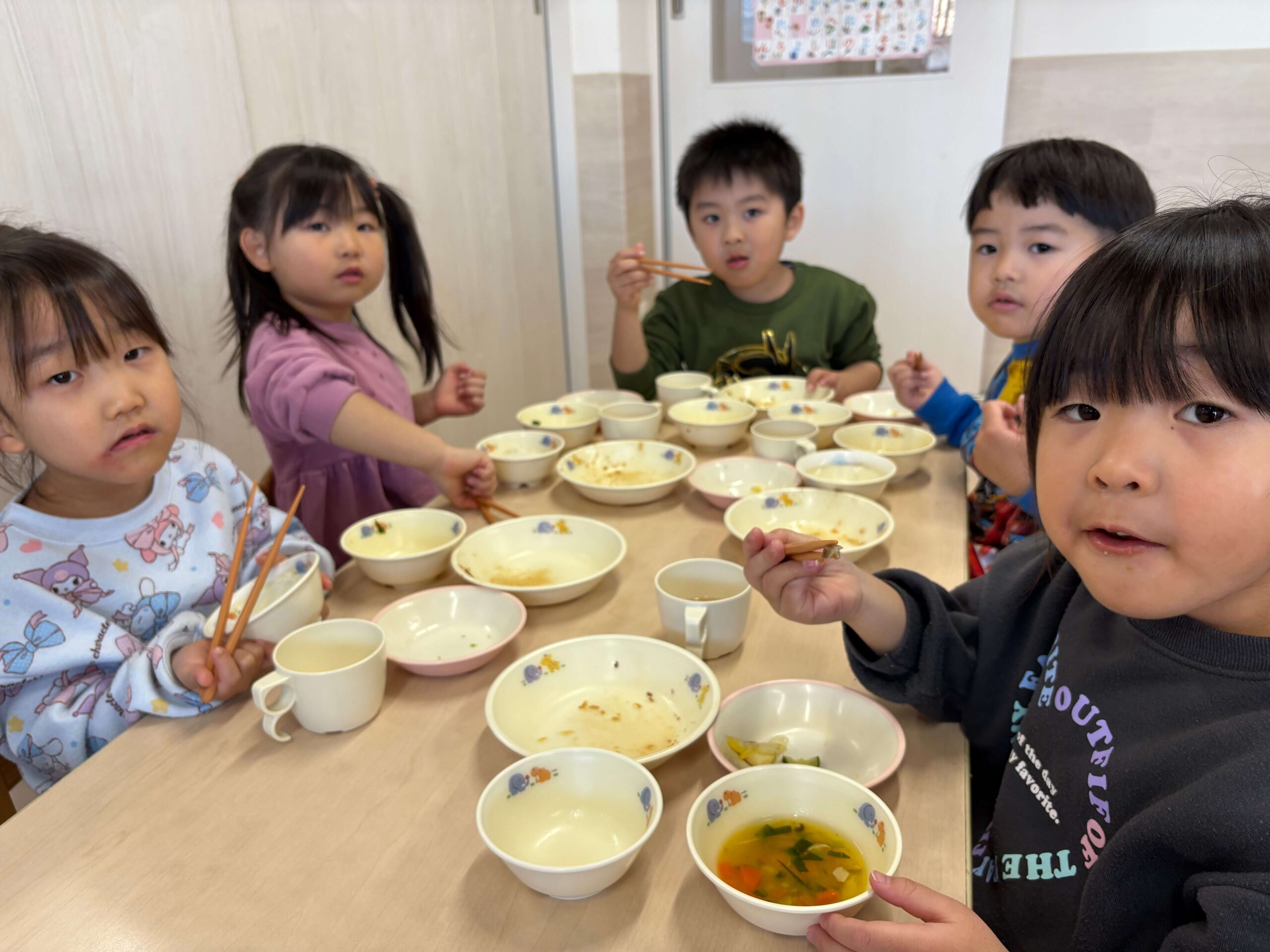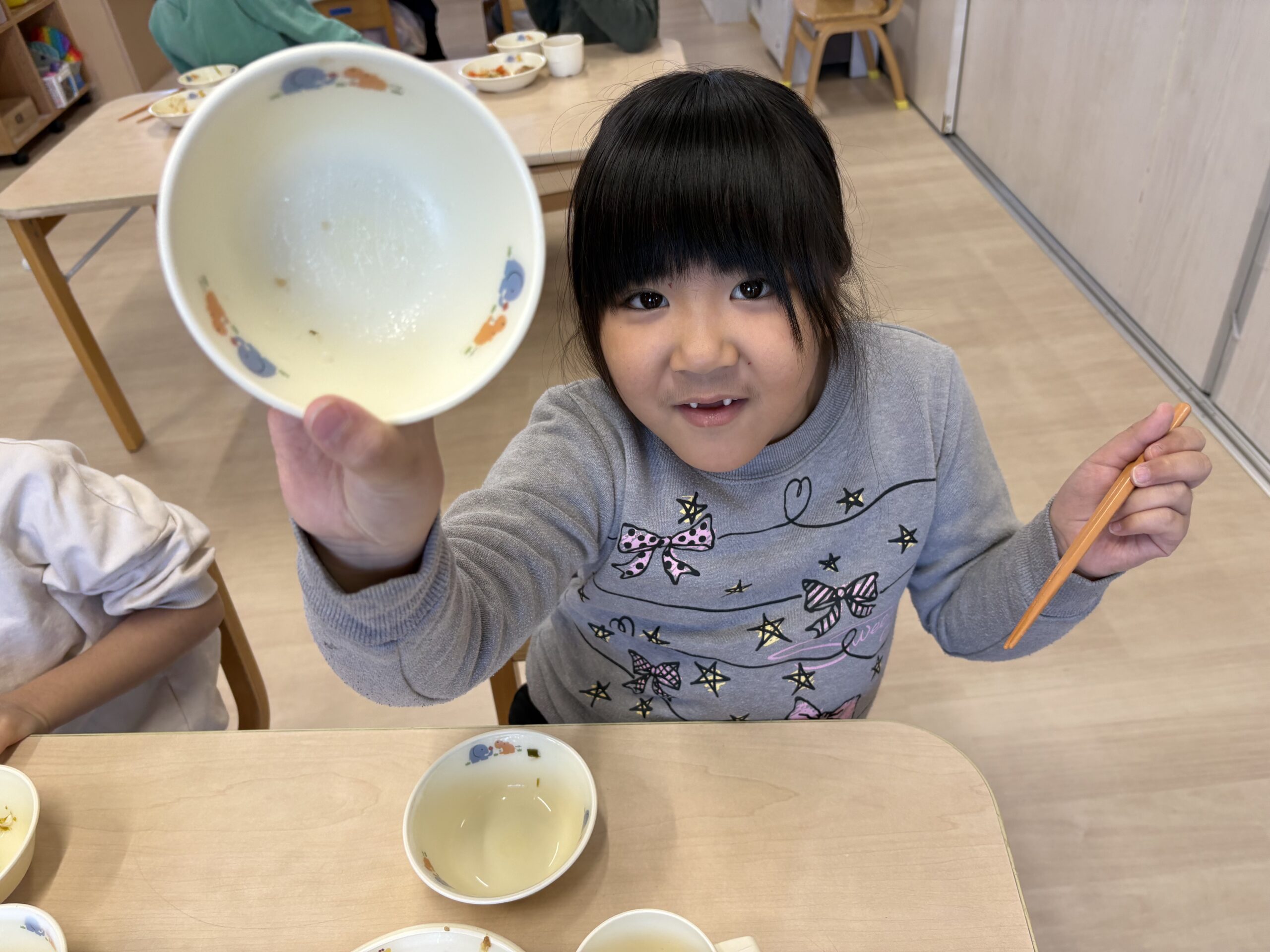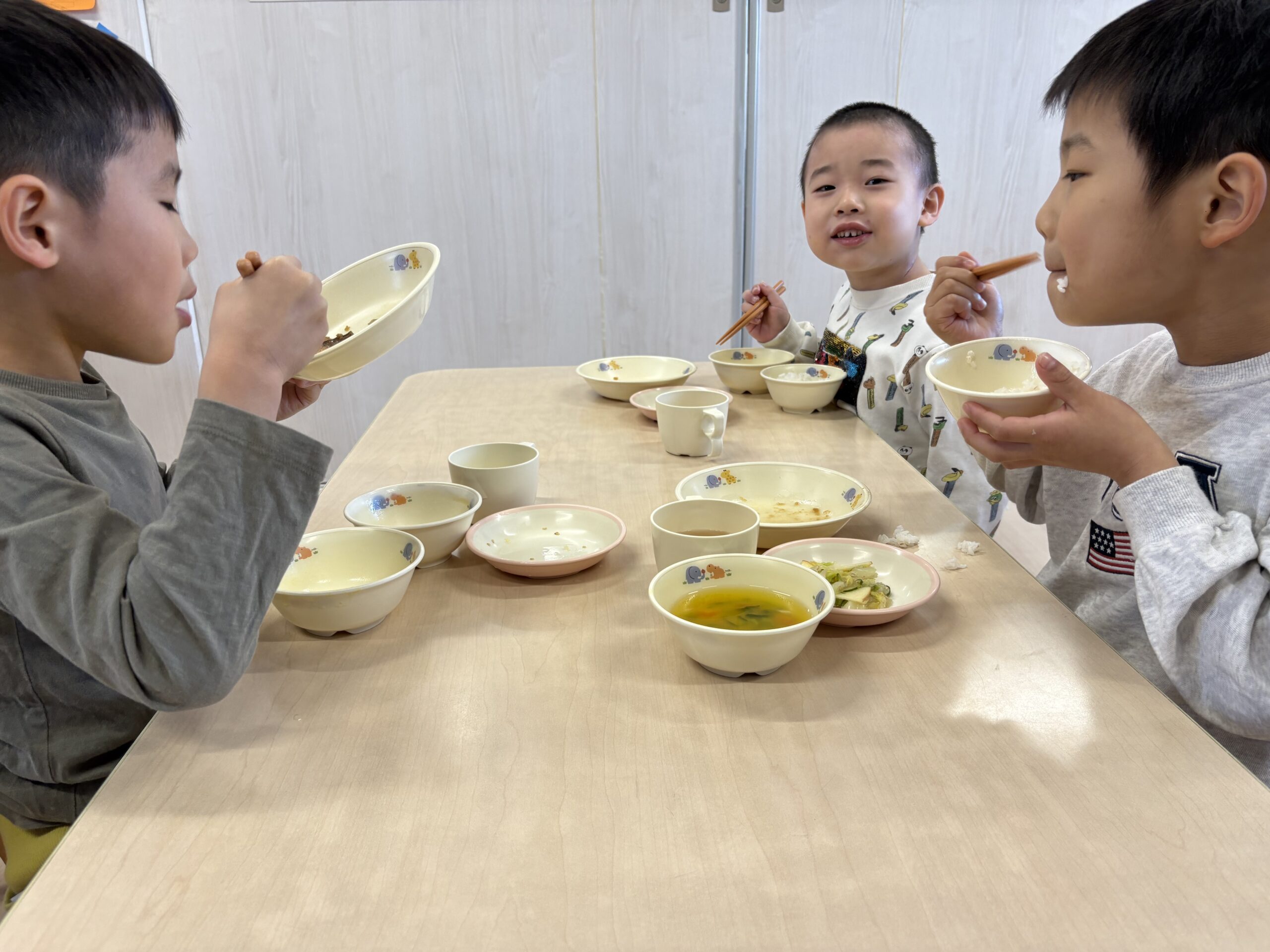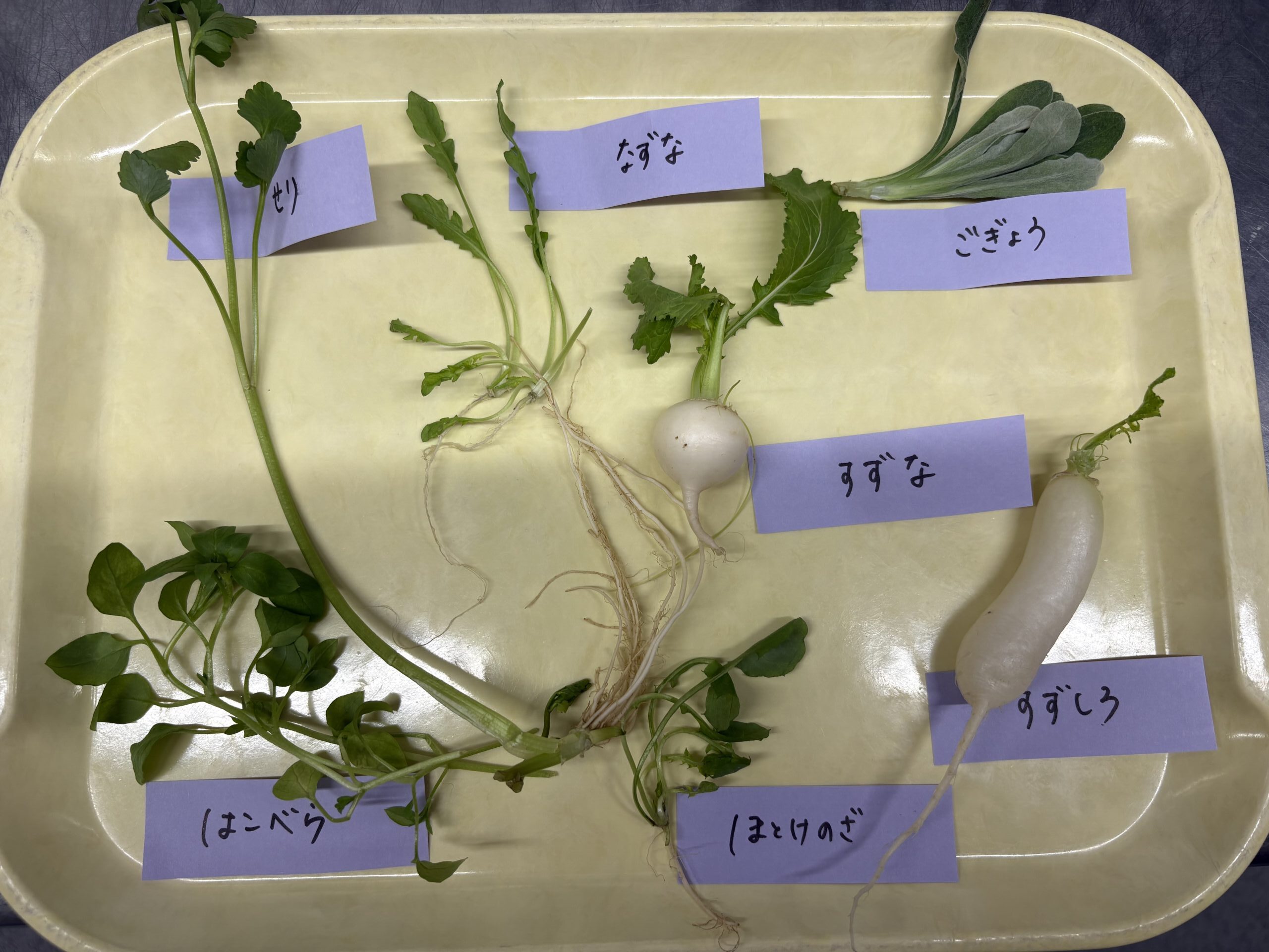 Home お知らせ 1月の伝統食と郷土料理🗻 1月の伝統食と郷土料理🗻 2026.01.15 お知らせ 1年のはじまりは、お正月のおせち料理や雑煮、七草粥、鏡開きなど、伝統行事ととも行事食と郷土料理を食べる機会が多いですね。当園でも1月7日は、七草粥を食べました。10日の鏡開きでは、ぜんざいをおやつの時間に提供しましたよ。こどもたちに、どんな意味があるのか紹介して伝えていきたいと思います。また、鹿児島の伝統野菜の桜島大根も給食に登場しました~🎵ぶり大根よく食べていました💖