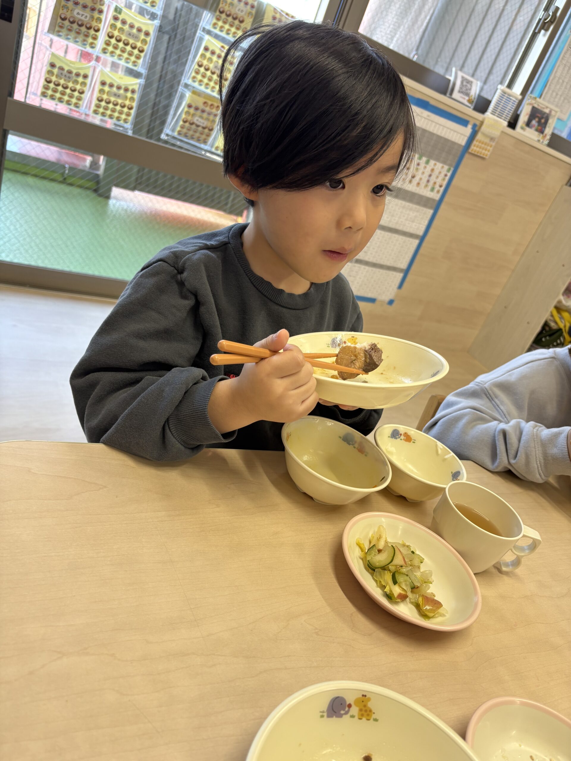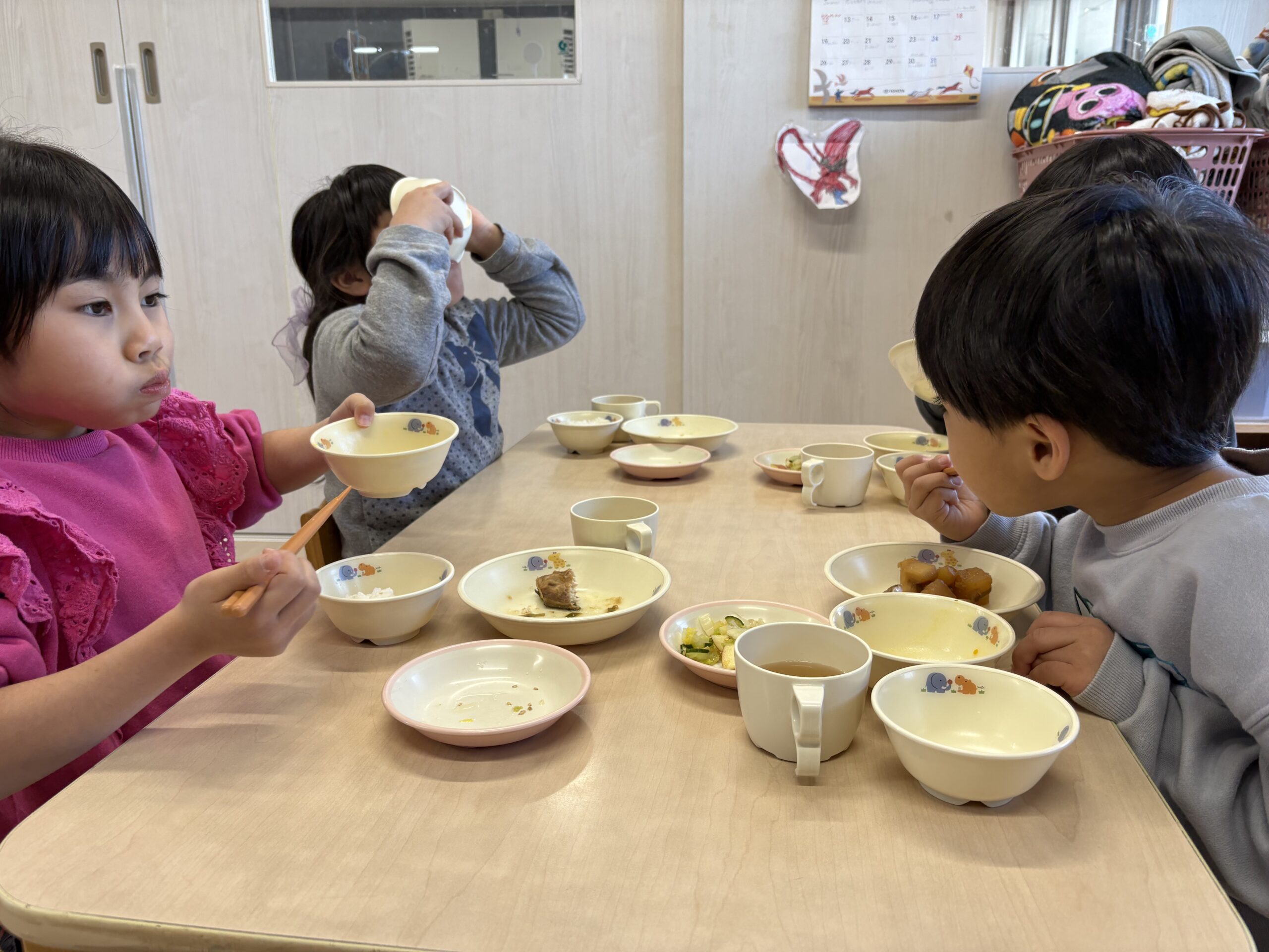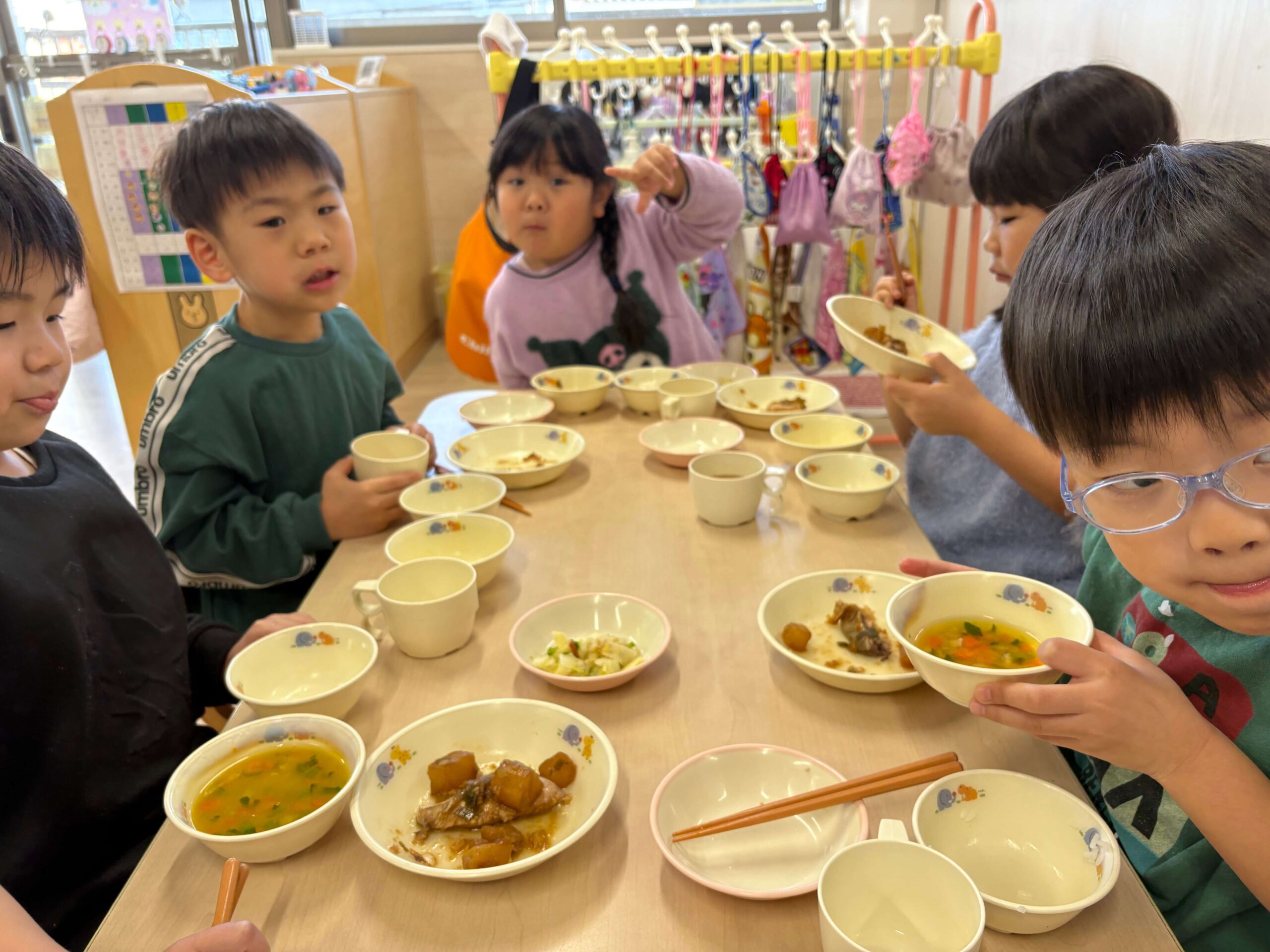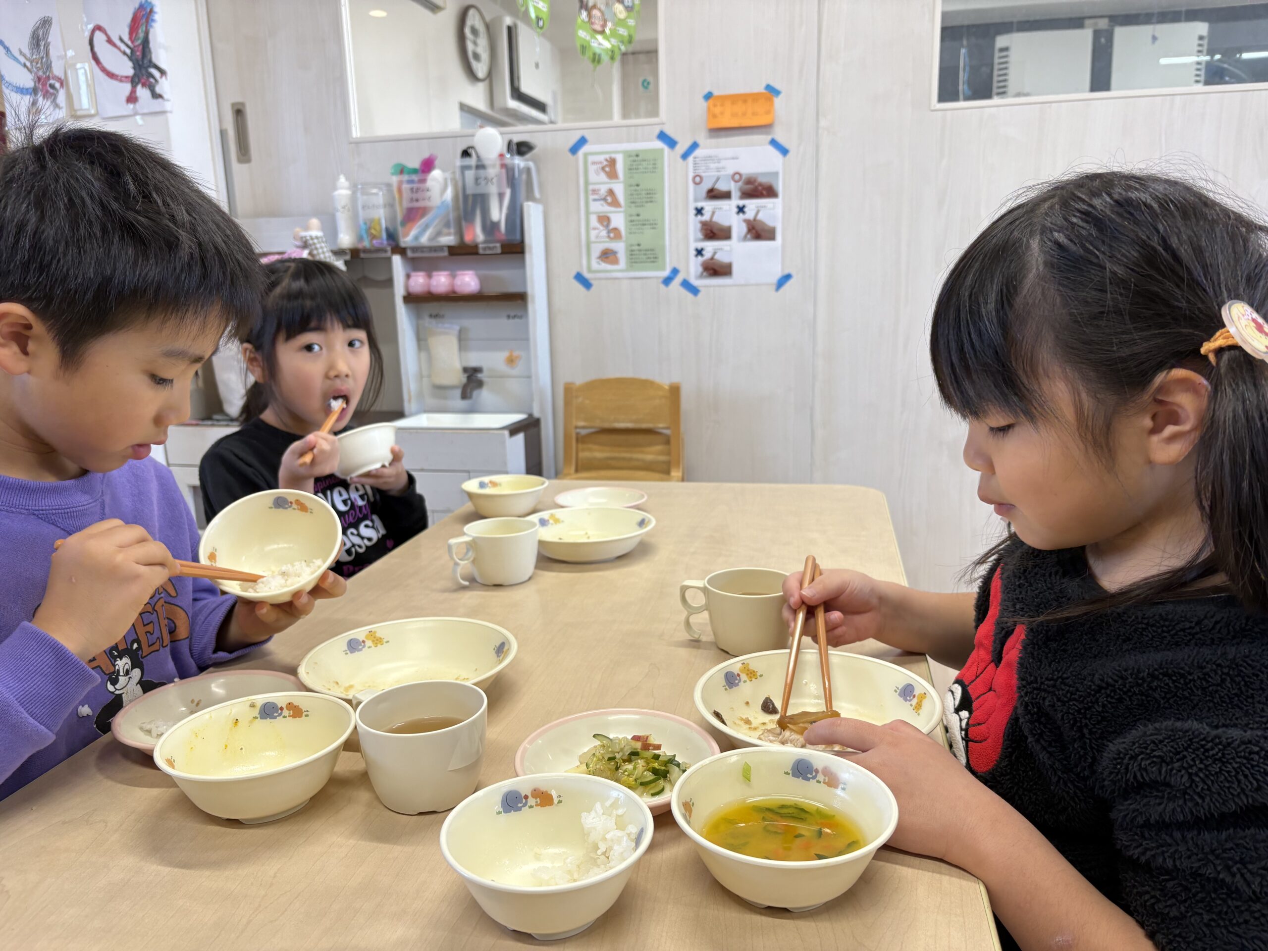 Home お知らせ 1月の伝統食と郷土料理🗻 1月の伝統食と郷土料理🗻 2026.01.15 お知らせ 1年のはじまりは、お正月のおせち料理や雑煮、七草粥、鏡開きなど、伝統行事ととも行事食と郷土料理を食べる機会が多いですね。当園でも1月7日は、七草粥を食べました。10日の鏡開きでは、ぜんざいをおやつの時間に提供しましたよ。こどもたちに、どんな意味があるのか紹介して伝えていきたいと思います。また、鹿児島の伝統野菜の桜島大根も給食に登場しました~🎵ぶり大根よく食べていました💖